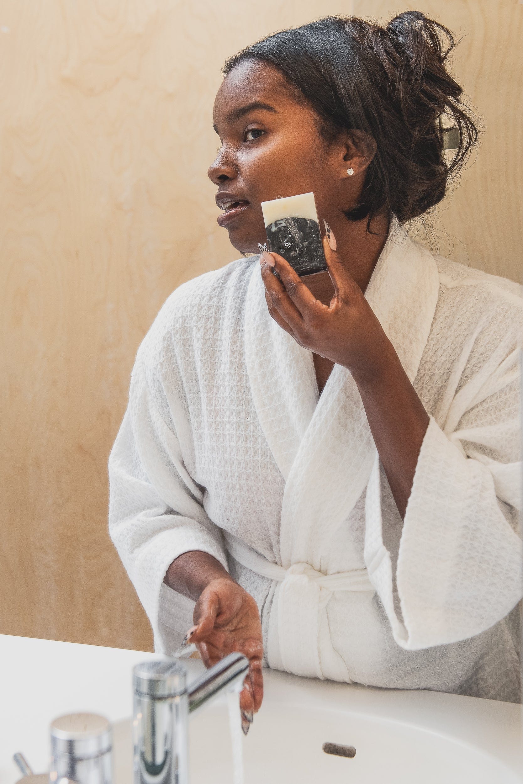 Our bar soaps are individually hand poured "wabi-sabi" style celebrating the beauty of being perfectly imperfect. No bar will look the same, offering a unique expression of our love and good intentions for your well-being. We produce in small-batches the old-fashioned way, our soaps cure for 8 weeks.