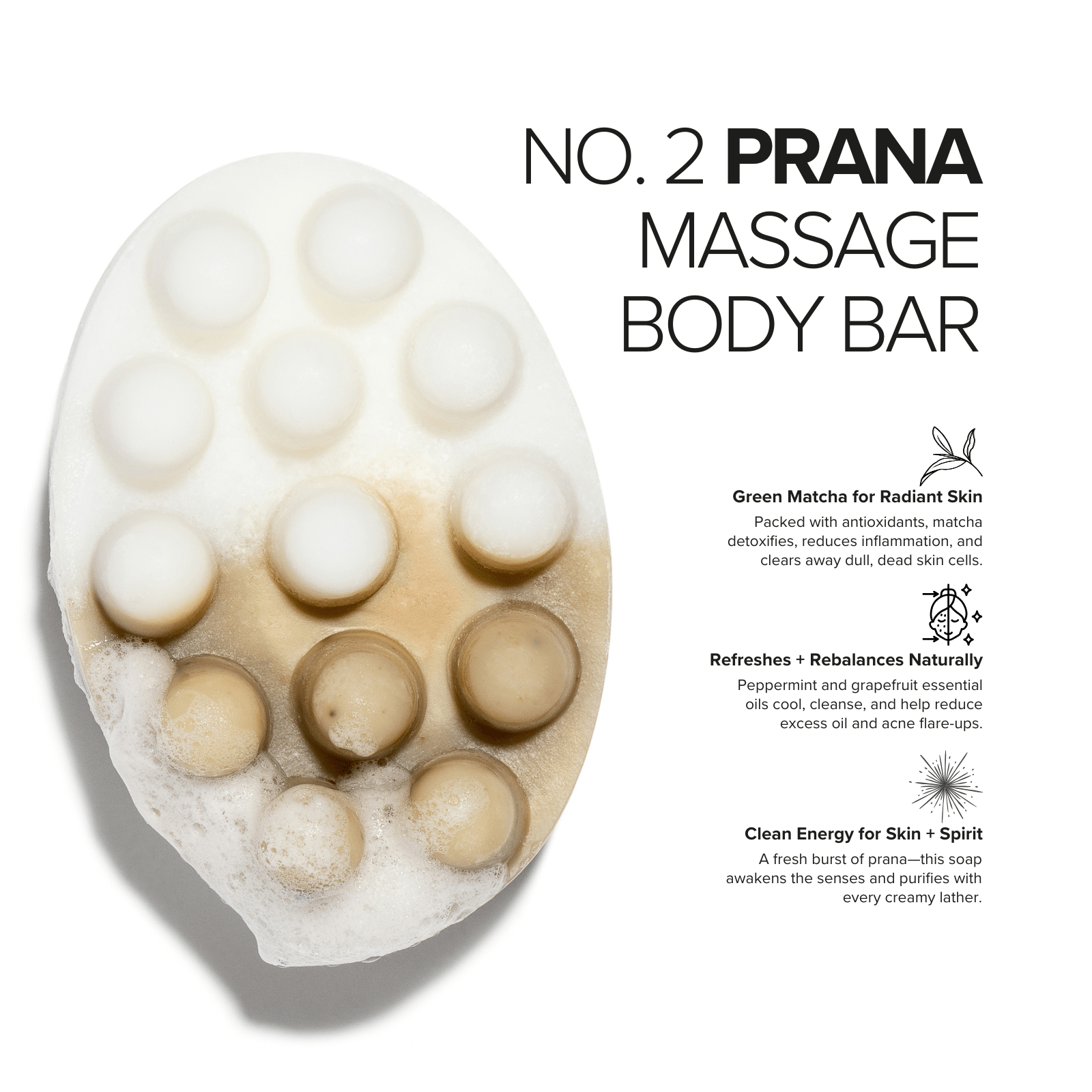 3 of our creamy, moisturizing No. 2 Prana Massage Body Bar Soaps for $45!