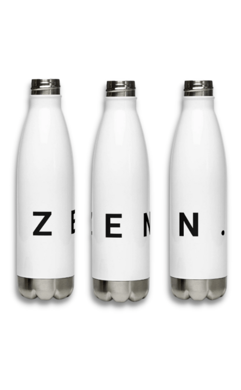 Z E N . is a commitment to make self-love + self-care your highest priority. We are elated to offer our signature design on this stainless steel water bottle that infuses intention with style + eco-friendly.